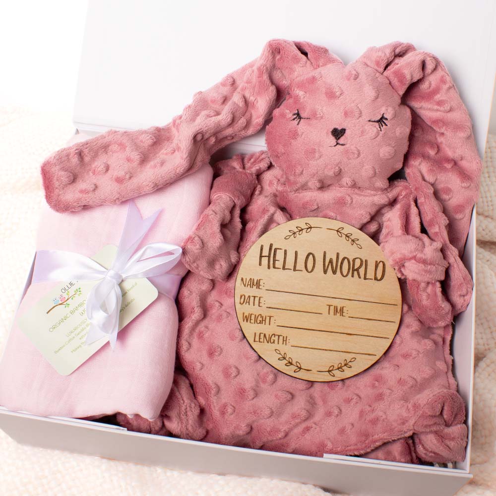 Personalise this gift by swapping the bunny or swaddle, or add extra pieces from our range to make this gift special.