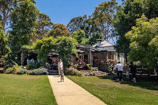 Tucked away in Chapman Hill near Busselton, Hippo Lakes is a family-run café and farm shop where you can dine on a shaded verandah overlooking the peaceful gardens and wide-open lawns. The farm shop is laden with unique gifts, bunches of flowers and, of course, their delicious cakes and preserves to take home. It’s a place to relax, wander and enjoy good food.