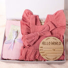 A breathable bamboo–cotton swaddle in the gentlest pink offers comfort well beyond the newborn stage, while a handcrafted Hello World disk adds a beautiful way to mark those first treasured moments.